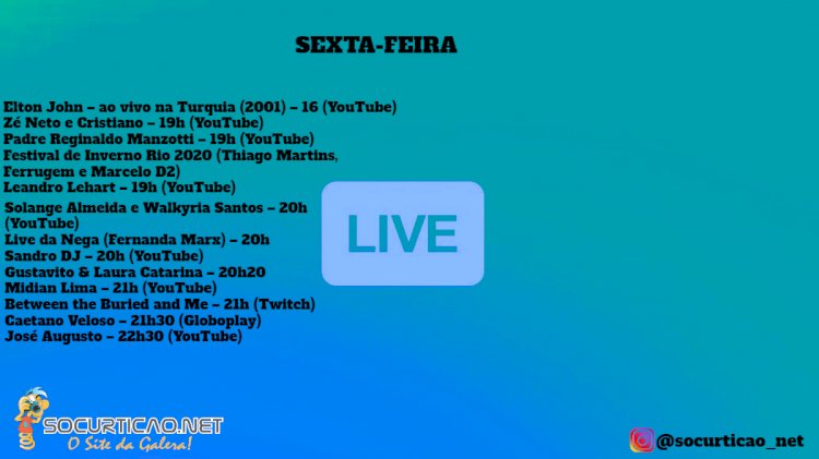 Final de semana chegou, confira as lives que agitarão sua quarentena